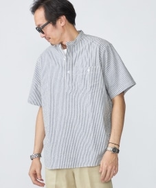 〔MEDIUM〕SHIPS: シアサッカー プルオーバー バンドカラー ショートスリーブ シャツ