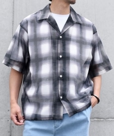 〔LARGE〕SHIPS any: メッシュ オンブレチェック / ウェーブ パターン オープンカラー シアー シャツ◇