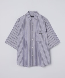 〔MEDIUM〕SHIPS: ストライプ ブロード レギュラーカラー ショートスリーブ オーバー シャツ