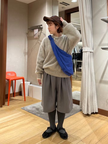 着心地:ウエストもゴムなので楽に着ていただけます。タイトすぎないシルエットで体のラインを拾いにくいので着丈の短いトップスと合わせて着ても◎