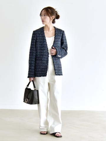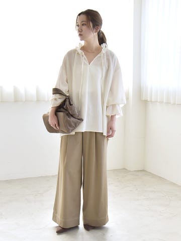 トレンドのラインパンツをキレイめなコーディネートの中にもさりげなく取り入れられる一着です。