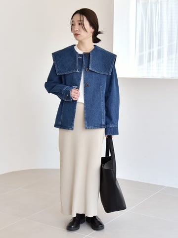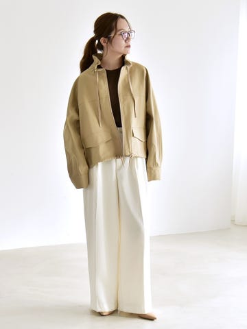 程よくゆとりがあるサイズ感です。着丈はウエストが隠れるぐらいの長さで、ボトムスのシルエットも選ばずに着用できます。スタンドカラーのデザインがすっきりとした印象の1着です。