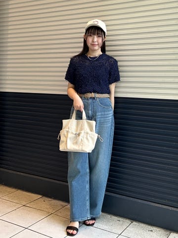 【素材感・着心地】適度な厚みのデニム。股上を浅くハイライズにすることでセミフレアのシルエットになっております。