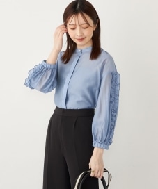 〔ONE SIZE〕SHIPS Colors:〈手洗い可能〉ブライト シアー ローン フリルスリーブ シャツ◇
