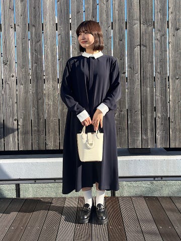 ゆったりとしたAラインシルエットで楽チンなのに綺麗見えするのが嬉しいポイント。