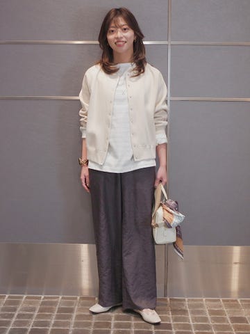 着用感 : 少しシャリ感のある生地で、サラッとした肌離れの良い素材です。シルエットがすごく綺麗な美脚パンツなのでオンオフ兼用で活躍しそうです。