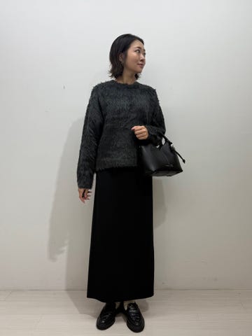 サイズ感:ニットやセーターとも合わせられるようなゆったりとしたサイズです。後ろはお尻が隠れる長さです。
