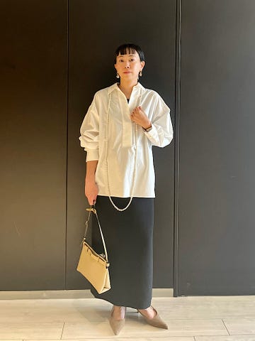 身長:163cm / 普段サイズ:38/ 着用サイズ:L
