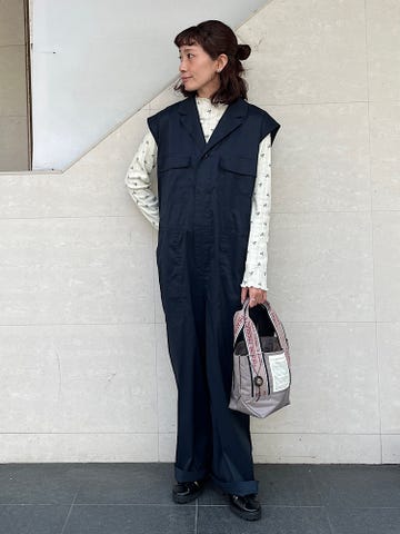 着用アイテム:SHIPS any:〈洗濯機可能〉ダブルクロス ノーカラー ジップ ブルゾン[NAVY BLUE]