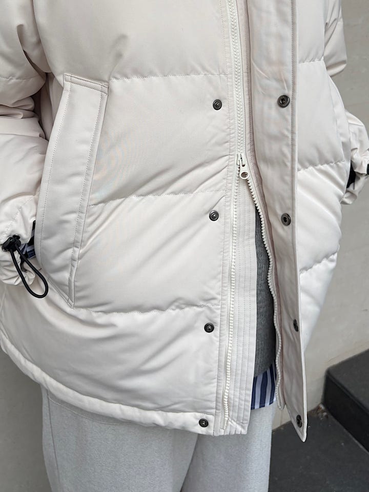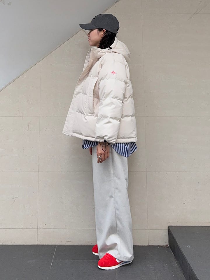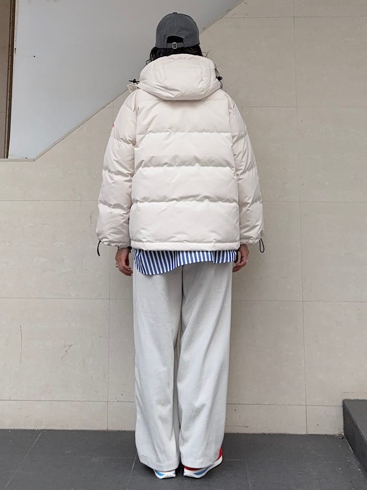 昨年人気のダウンが今年も入荷しました!軽くてしっかり暖かいのと、袖口と裾にドローコードもついているのでしっかり防寒できます◎ 袖も着丈もジャストで、身幅もややゆとりがあります。