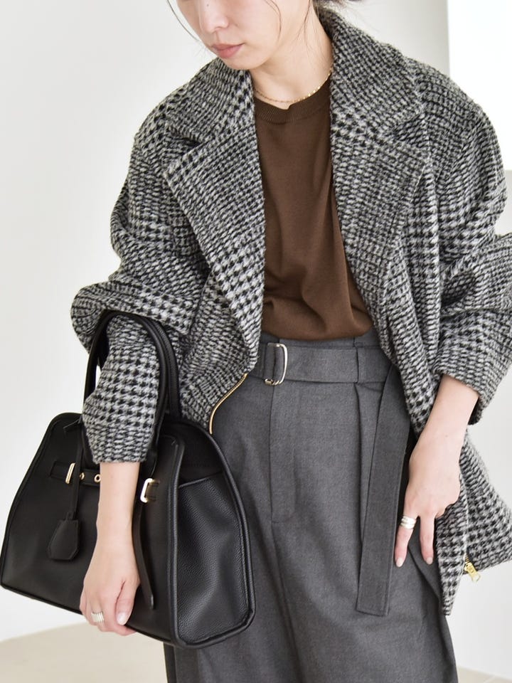 〔ONE SIZE〕quaranciel: ボンディング チェック ライダース コート