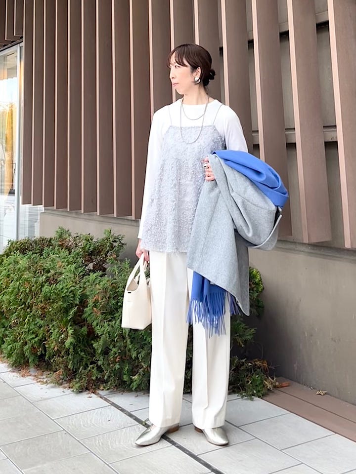 着心地:小さなラメが上品。春先も着用できます。