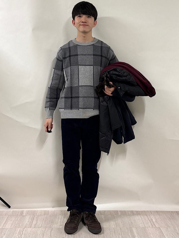 〔LARGE〕SHIPS:〈洗濯機可能〉 コットン カシミヤ チェック クルーネック ニット