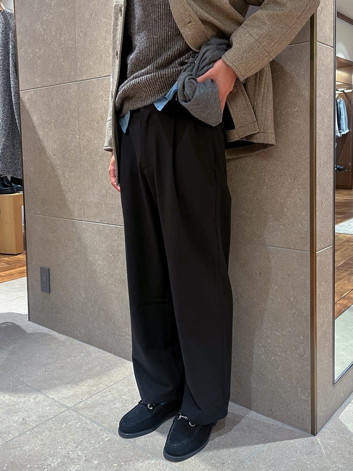 〔MEDIUM〕City Ambient Products: ソフト ツイード ライク 2タック ワイド スラックス