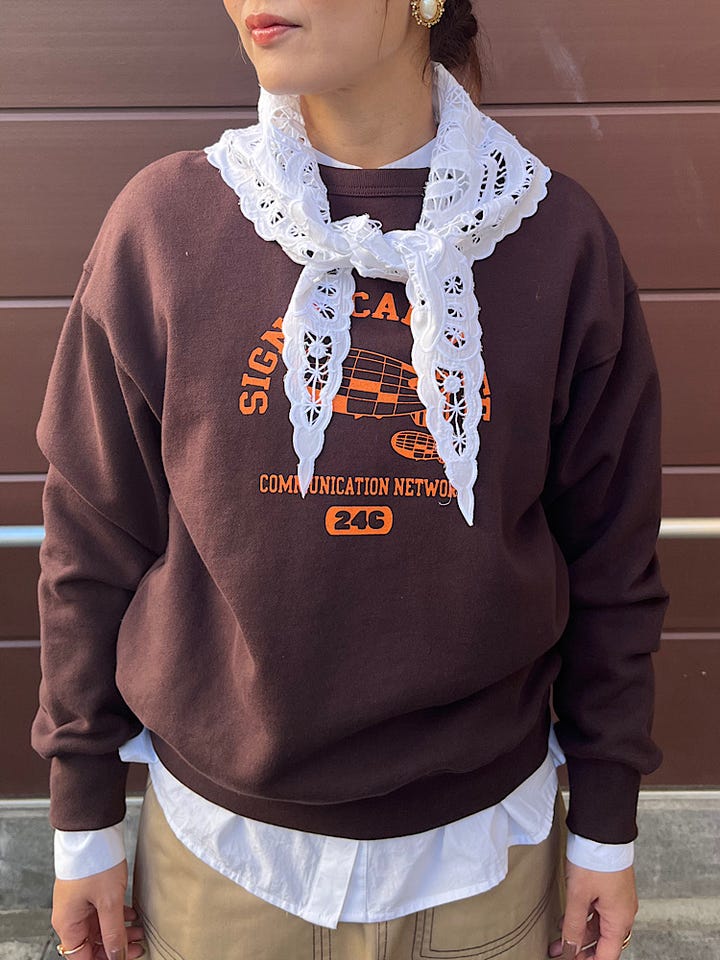 素材感・着心地:トレンドのブラウンカラーのスウェット。生地も柔らかく、着やすいです。着丈も長すぎないので、スカートにもパンツにも合わせやすいです。