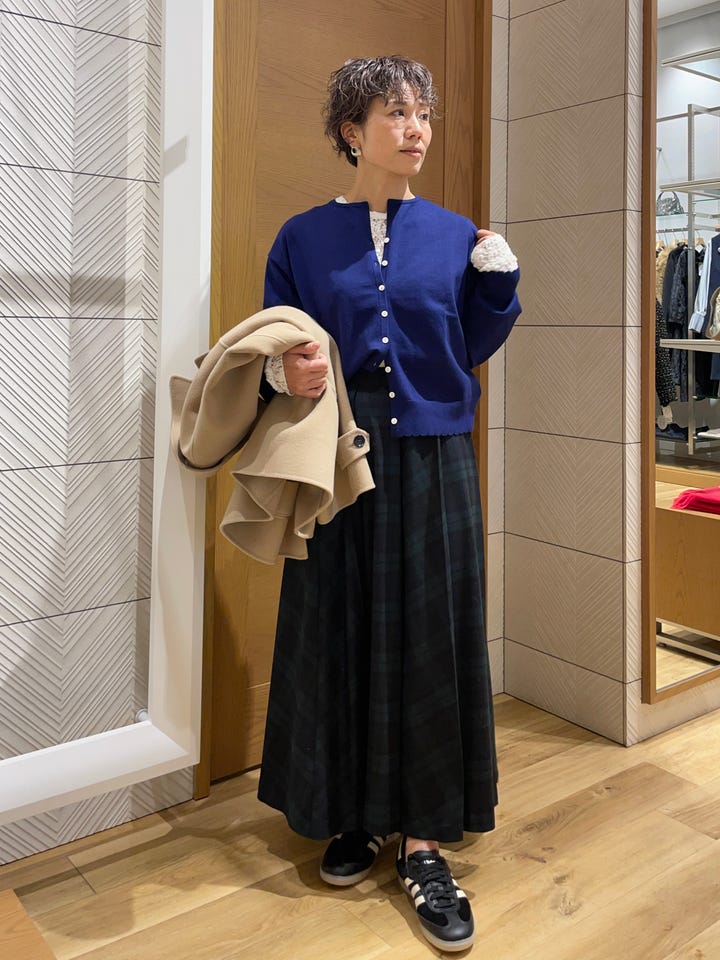 〔36〕SHIPS Primary Navy Label:フラノ パネル チェック フレア スカート