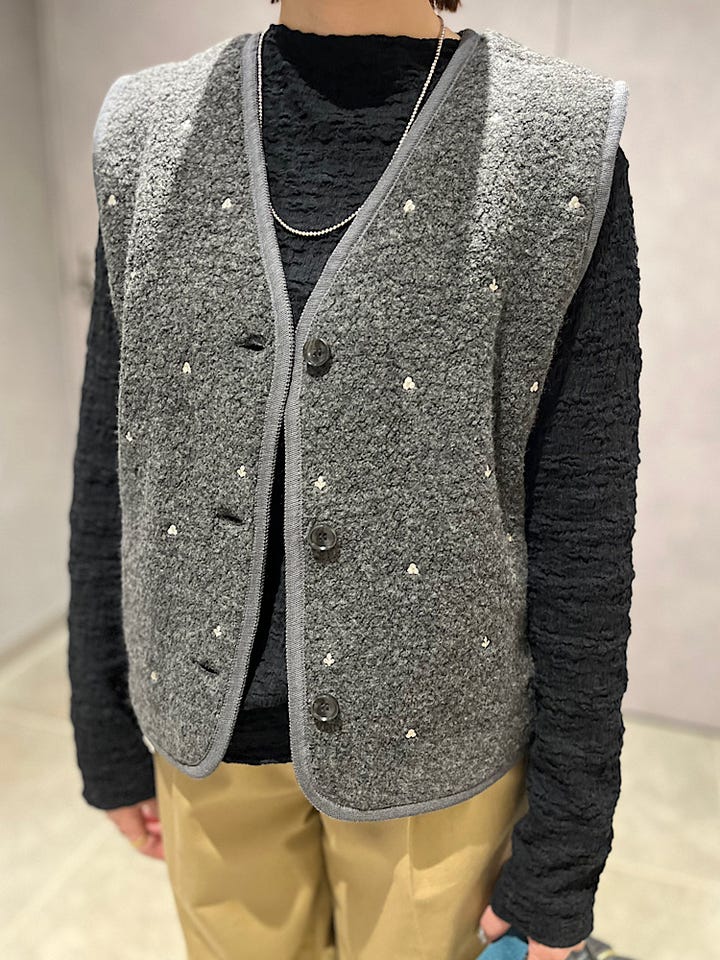 〔ONE SIZE〕【SHIPS別注】assiette:ウール混 ボア 刺繍 ベスト