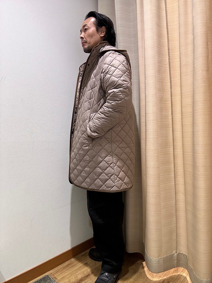 着心地:撥水性のあるキルティングアウターです。オンオフ兼用で着用いただける万能なアウターです