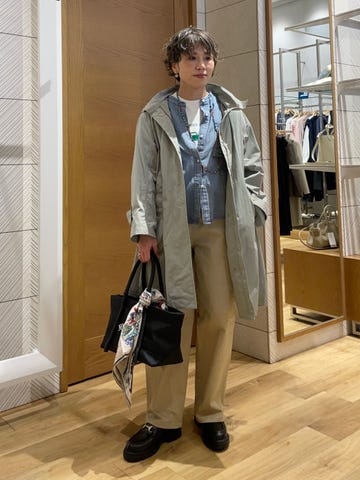 着心地:薄手なので暖かい季節にも活用出来そうです。高身長ですが膝は見えないくらいの丈感です。