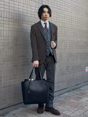 サイズ感:ゆったり目、中にジャケット、厚手のニット着用できるサイズ感です。