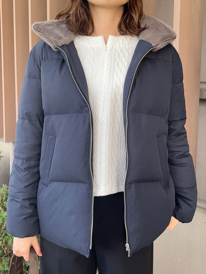 着心地:柔らかく軽い着心地のダウンジャケット。スッキリとしたシルエットです。
