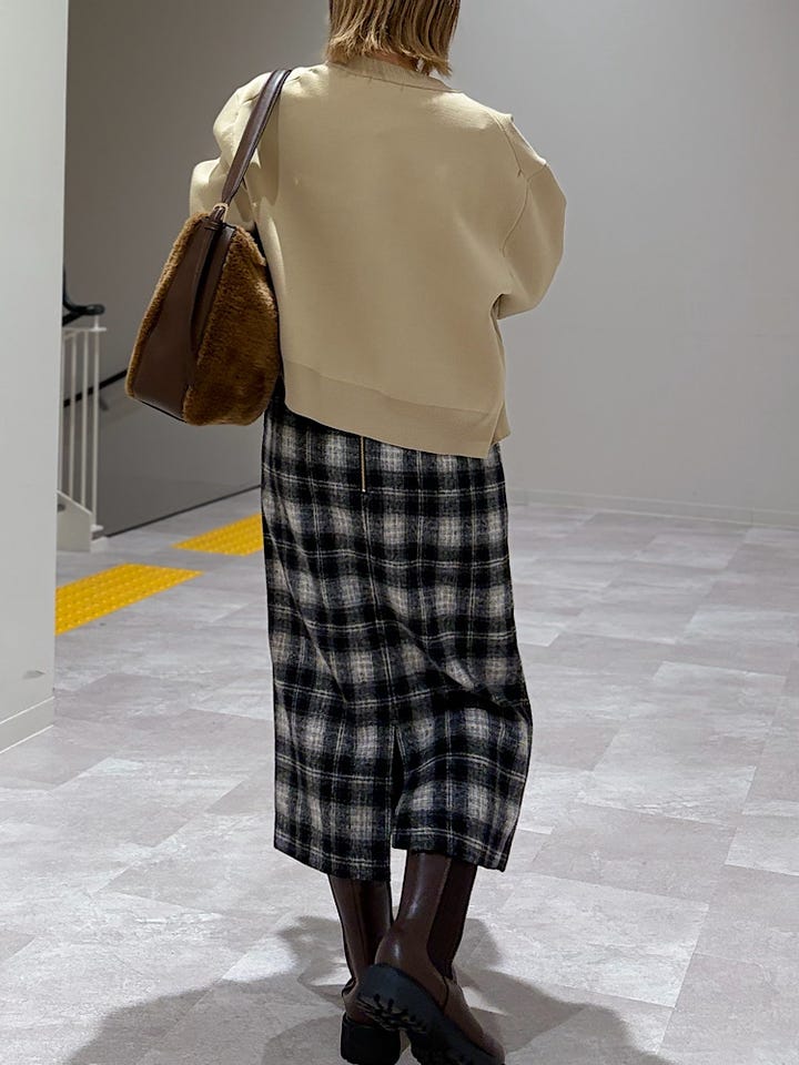 【素材感・着心地】タイトですが、厚手で柄が印象的なので、シルエットを拾いにくく着やすい。かなりあったかいです!!