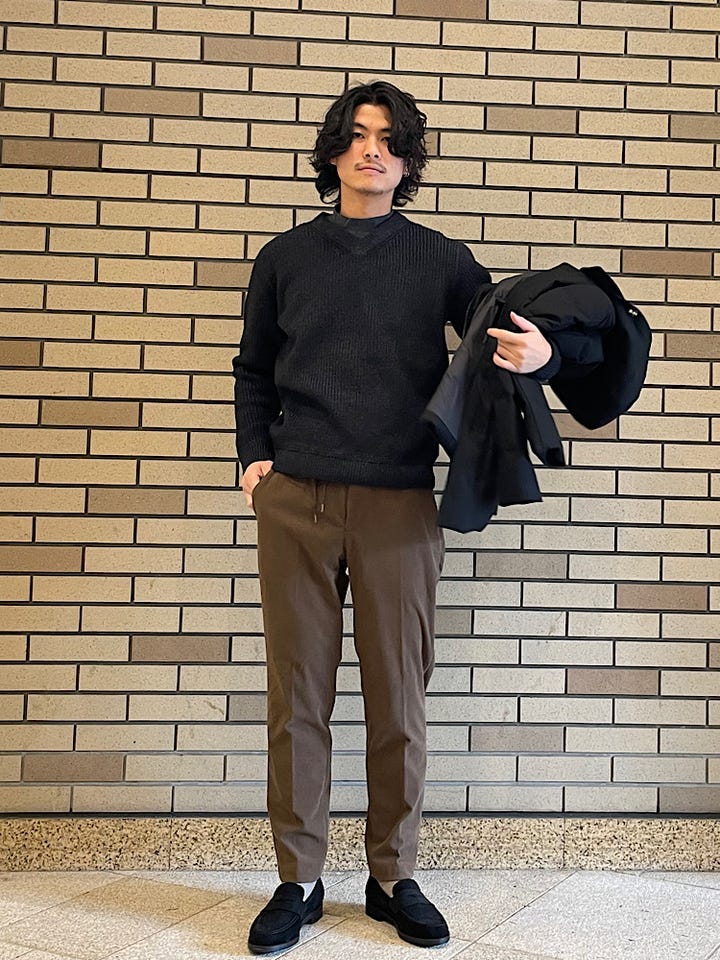 サイズ感:ゆったり目、中に厚手のニット着用できるサイズ感です。