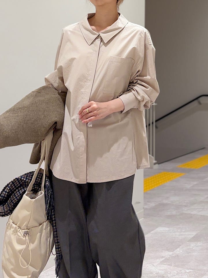【素材感・着心地】落ち感のきれいなシルエット。シワになりにくく普段使いにおすすめです!!