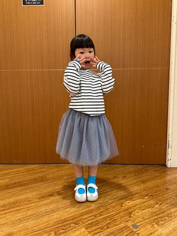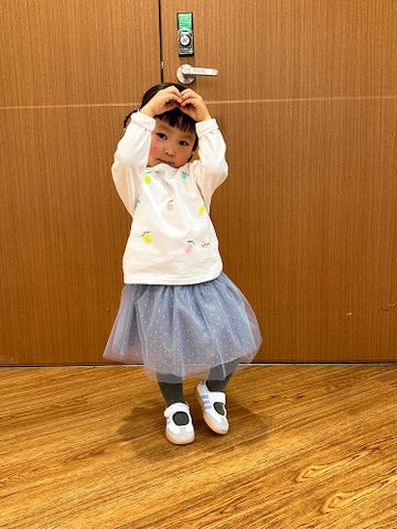 立体感のあるシフォンやチュールのお花や音符など女の子のスキを詰め込んだ1着です♪