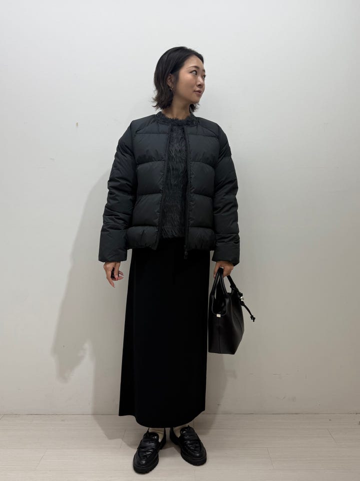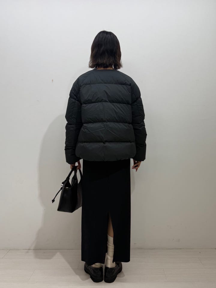 サイズ感・着心地:ゆとりあり。中にまだまだ着込めそうです。コンパクトな丈感でダウン特有の着膨れがなく、苦手意識のある方にも着やすい形です。