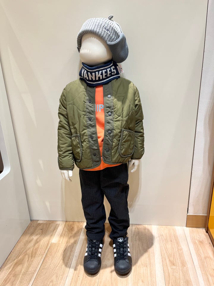 ボアとキルティング、両方使えるリバーシブルブルゾンです。柔らかな生地なのでお袖も曲げやすく、ワンサイズあげて着用しても可愛いです◎