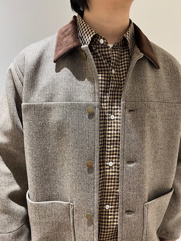 素材感・着心地:表地に化学繊維とウールを混ぜて使うことで機能性・高級感を同時に兼ね備えることができる、裏地にポリエステルを使うことで厚手のものをインナーに着ていてもサラッと羽織ることができる