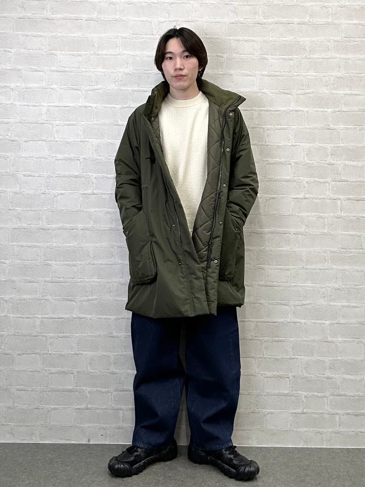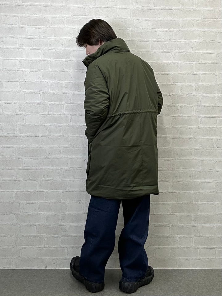 ややゆったりとしたシルエットで、スーツやジャケットの上からでも着用していただけます。
