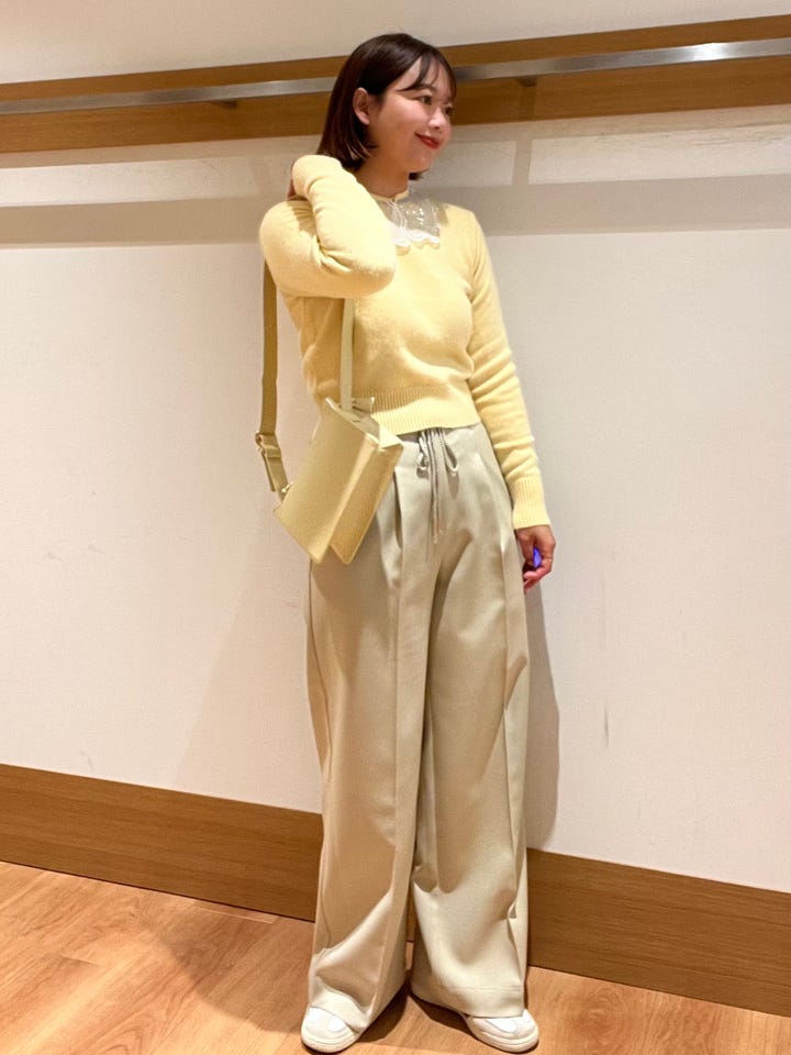 ウールライクであたたかみもある、イージーワイドパンツ。形がとにかく綺麗で大人カジュアルにピッタリです