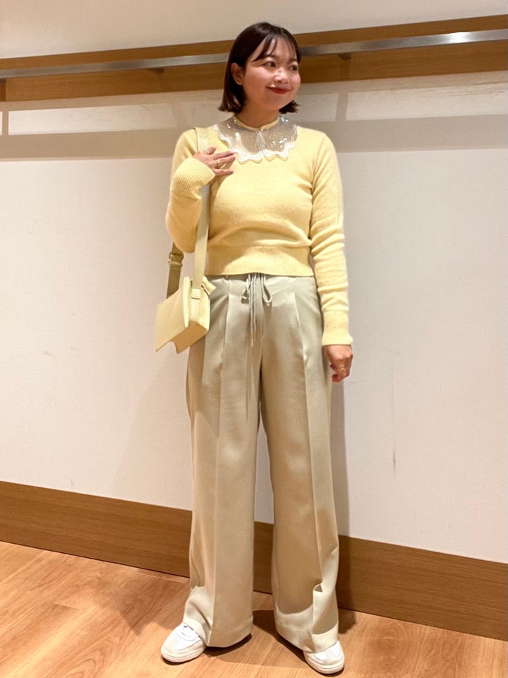 コンパクトなサイズ感のニットプルオーバーでボトムを選ばずに合わせられます!