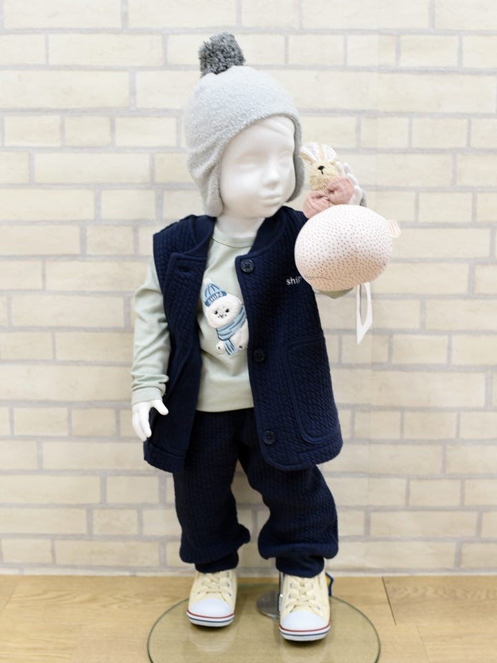 柔らかな素材で着心地も良く、快適なベビー向けキルトベスト。