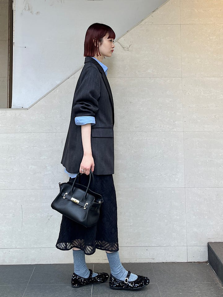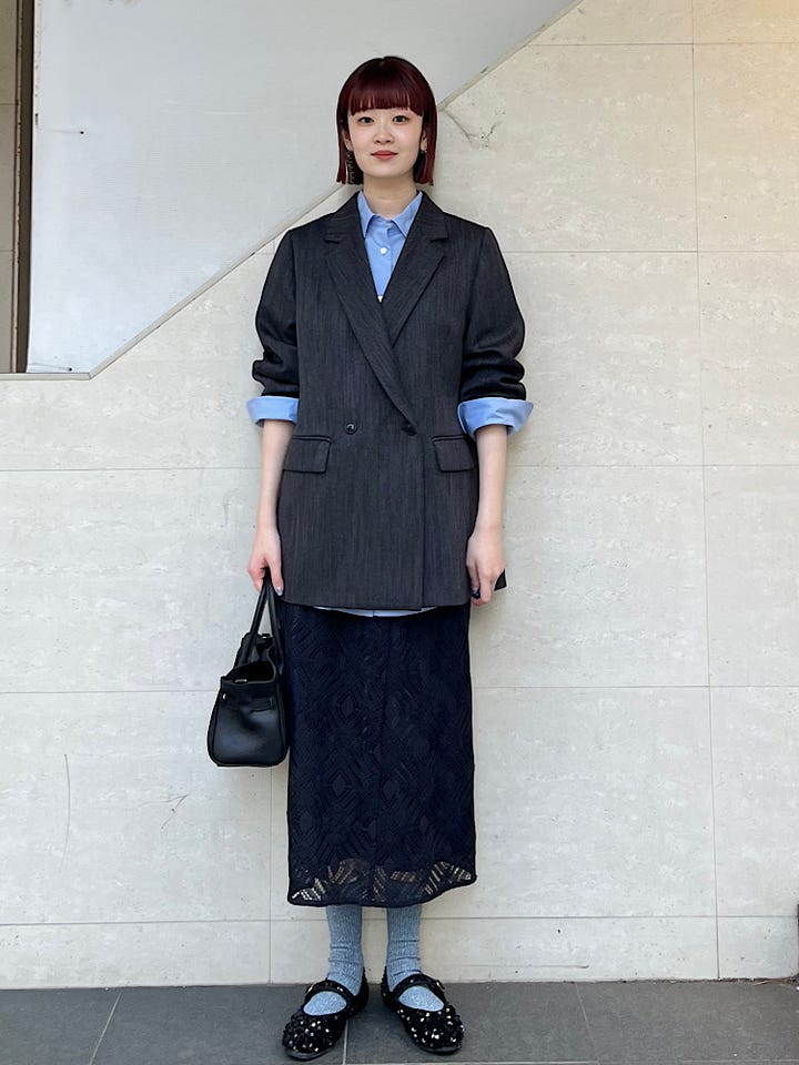着心地:脚のシルエットが目立たないIラインスカートです。レース素材なのでニットやスウェットなどの重ためのトップスとのバランスも取りやすいです。