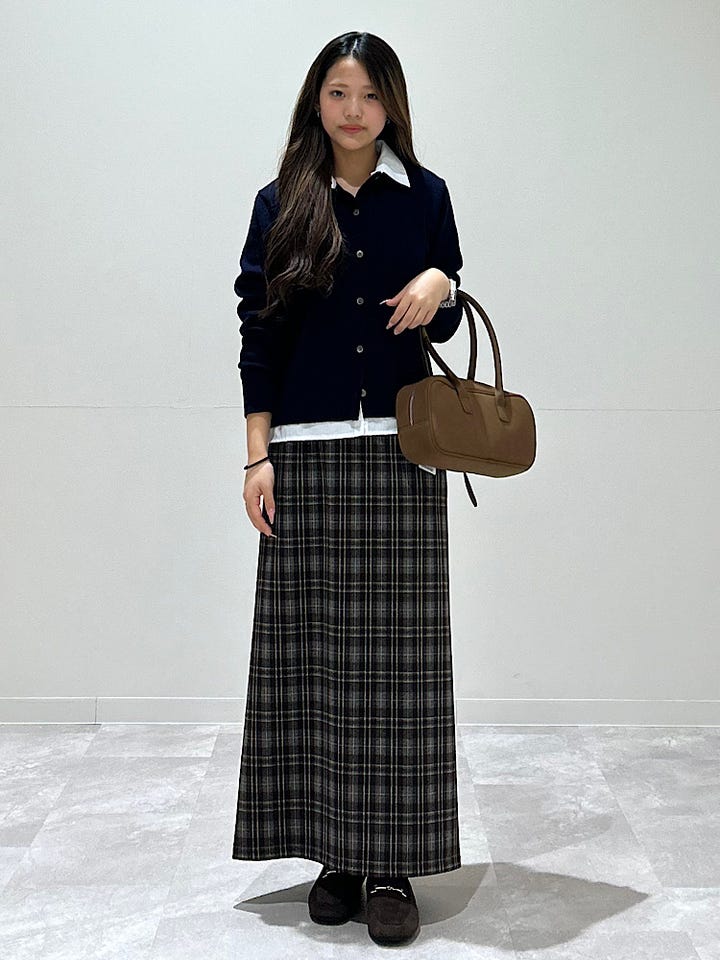 〔ONE SIZE〕SHIPS Colors:〈手洗い可能〉ジャージー へリボーン / チェック タイトスカート