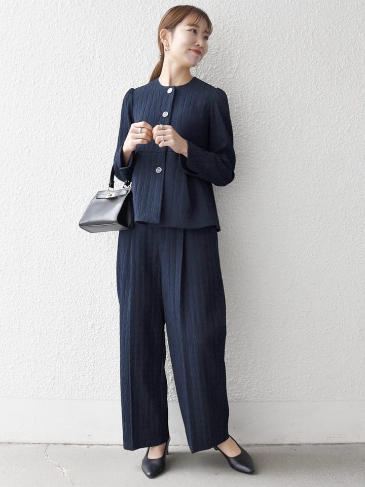 着用アイテム:ジャカード タック セミワイド パンツ NAVY BLUE