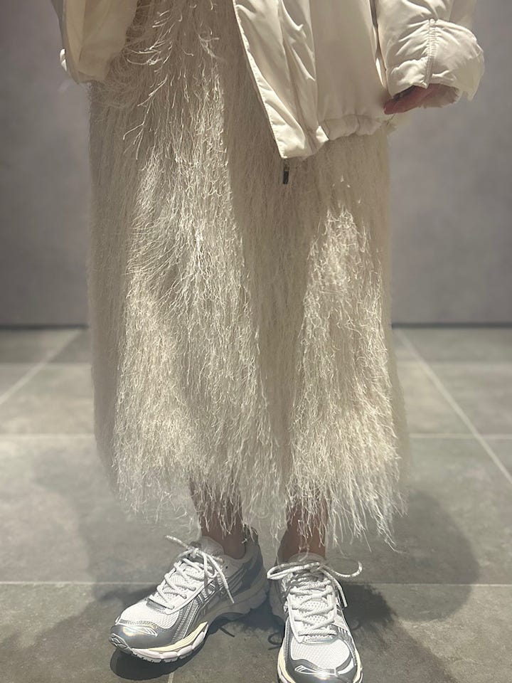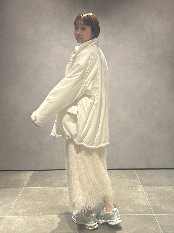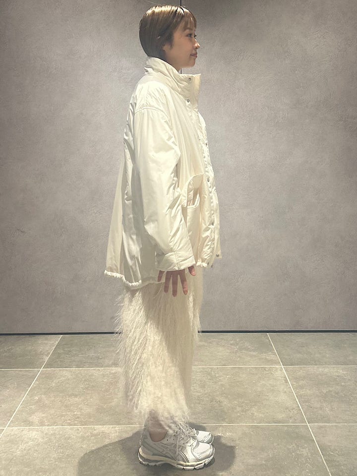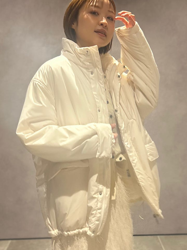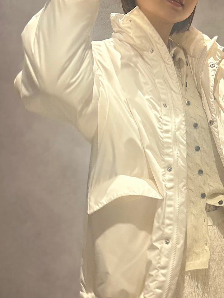 素材感・着心地:エアリーでボリューム感あるように見えますがとても軽くて着やすいです。ヒップまで隠れる丈でコーディネートにバランスよく合わせていただけます。