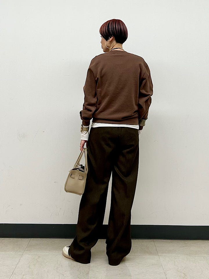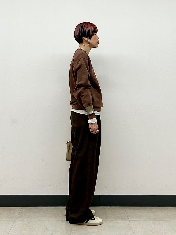 サイズ感:ややゆったり。普段通りのサイズでも程よいゆとり。カジュアル感を出したかったので、ワンサイズアップで腰位置を落としてルーズに着ました。
