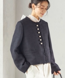 〔36〕トライスピン 杢 ツイード パール モチーフ ボタン ジャケット(セレモニー対応可)