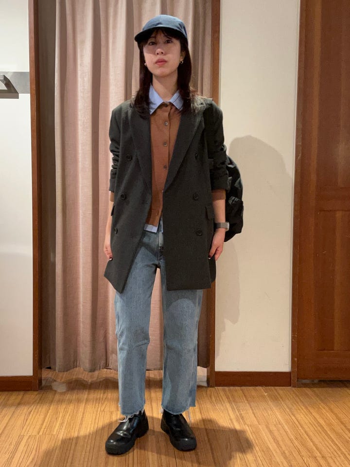 今トレンドのジャケットとコートの中間、?ジャコットです。?着丈はジャケットより長く、カチッとしすぎない?すこしカジュアルなデザインです。?