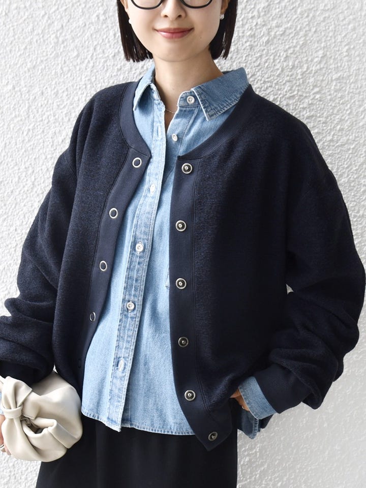 着心地:あたたかいのに軽い着心地◎ニットの柔らかな表面感と、カットソーのような扱いやすさを併せ持ったカーディガンです。