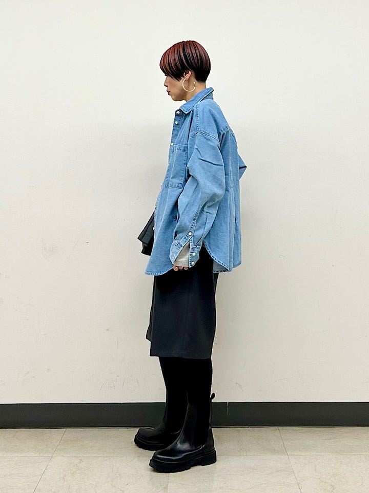 着心地:一見デニムジャケットのような厚手に見えますが、適度な厚みでごわつきません。柔らかく、インナーとしても羽織りとしても着やすいシャツです。