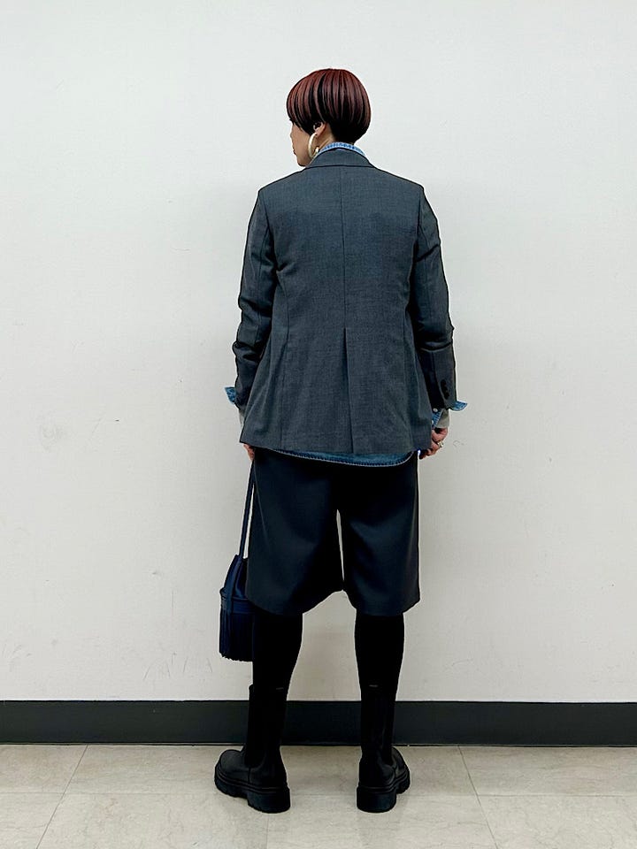 着心地:しなやかで軽い素材。付かず離れず程よくゆとりのあるサイズ感のため、気負わずシャツのような感覚で着られました。ソフト肩パッドが入っていますが、重さや硬さはありません。さほど毛足の長くないウールで、スリーシーズン着用可能。