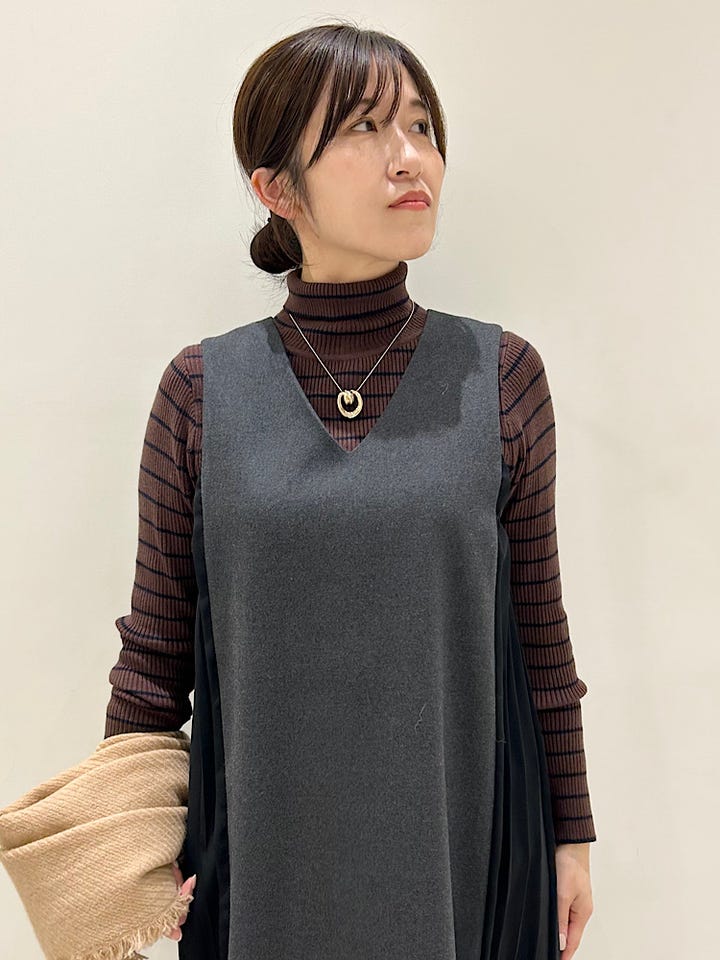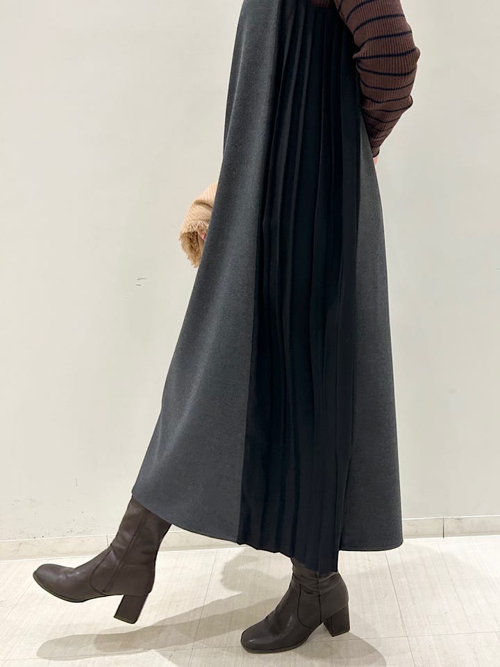 ?生地感:温かみのあるウール混素材×シフォンプリーツ