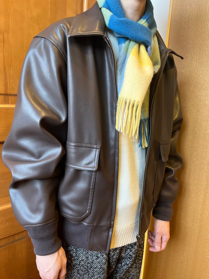 【素材感・着心地】合成皮革なので、軽さがあります。光沢感のある生地てます。