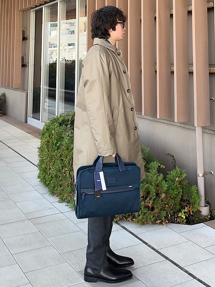 スタイリング : 多くのビジネスマンに高い評価をいただいたSHIPS別注のTUMIシリーズ ALPHA 3 新型のアイテムで、おすすめのスタイリングはスーツスタイルをオススメしております!ブリーフの中でもかなり軽量になっており、丈夫な商品です。