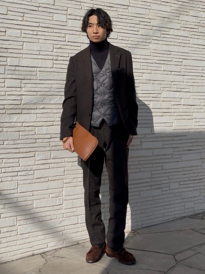 スーツスタイルだけでなくビジネスカジュアルにもマッチする至極のインナーダウンジレ。